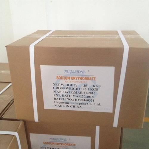 Erythorbinezuur is een belangrijk antioxidant in de voedingsmiddelenindustrie, dat de kleur, natuurlijke smaak van voedingsmiddelen kan behouden en de opslag kan verlengen zonder giftige en bijwerkingen.Ze worden gebruikt in de vleesverwerking.Ook worden ze gebruikt in dranken, zoals bier, druivenwijn, frisdranken, fruit thee en vruchtensap, enz.